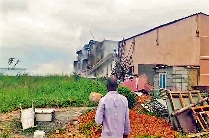 సంగారెడ్డి అర్బన్, సెప్టెంబర్ 26 : చెరువు బఫర్ జోన్, ఎఫ్టీఎల్ పరిధిలోని ఆక్రమణలను బుల్డోజర్లతో కూల్చడం చూశాం. కానీ, సంగారెడ్డి జిల్లాలో అధికారులు ఏకంగా డిటోనేటర్లనే వాడి అక్రమ నిర్మాణాన్ని నేలమట్టం చేశారు. వివరాల్లోకి వెళ్తే.. మల్కాపూర్ పెద్ద చెరువు ఎఫ్టీఎల్ పరిధిలో నిర్మించిన ఓ మూడంతస్తుల భవనాన్ని అధికారులు డిటోనేటర్లు పెట్టి కూల్చివేశారు. కొండాపూర్ మండలంలోని కుతుబ్షాయిపేట (మల్కాపూర్) పెద్ద చెరువు ఎఫ్టీఎల్లో అక్రమంగా నిర్మాణం చేసి భవనాలను గురువారం కూల్చివేశారు.