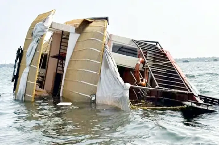 షిప్ బలమైన తుపాను గాలుల కారణంగా మునిగిపోయిందని అధికారులు తెలిపా రు. సమాచారం అందుకున్న పోలీసులు, ఎస్టీఆర్ ఎఫ్ బృందం 18 మం దిని సురక్షితంగా రక్షించా రు. నలుగురి మృతదేహాలను వెలికితీశారు. గల్లంతైన వారిని కనుగొనేందుకు చ ర్యలు ముమ్మరం చేశారు. ఘటనకు కారణమైన వారి పై చర్య లు తప్పవని సీఎం మోహ న్ హెచ్చరించారు.