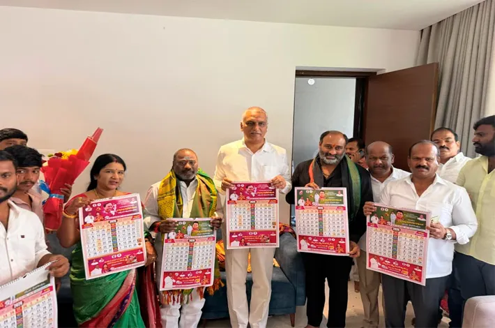 పటాన్ చెరు, జనవరి 1: శాసనసభ బీఆర్ఎస్ డిప్యూటీ ఫ్లోర్ లీడర్గా ఎన్నికైన మాజీ మంత్రి హరీష్రావును గురువారం నాడు మాజీ ప్రోటెం చైర్మన్ భూపాల్ రెడ్డి, పటాన్చెరు నియోజకవర్గ పార్టీ ఇన్చార్జ్ ఆదర్శ్ రెడ్డి మర్యాదపూర్వకంగా కలిసి తెలిపారు. కొత్త సంవత్సరం రాష్ట్ర ప్రజలకు శాంతి, సు భిక్షత, అభివృద్ధిని తీసుకురావాలని ఆకాంక్షించారు. కాటా సునీత రాజేష్ గౌడ్ ఆధ్వ ర్యంలో ఏర్పాటు చేసిన నూతన సంవత్సర క్యాలెండర్ను ఘనంగా ఆవిష్కరించారు.