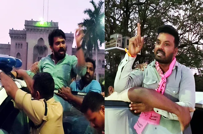 దీంతో పోలీసులకు, విద్యార్థి నాయకులకు తోపులాట జరిగింది. విద్యార్థి నాయకులను అరెస్ట్ చేసి ఉస్మానియా యూనివర్సిటీ పోలీస్ స్టేషన్ కు తరలించారు. ఖబర్దార్ రేవంత్ రెడ్డి... ఖబర్దార్ ఎంపీ వివేక్ అంటూ పెద్ద ఎత్తున నినాదాలు చేశారు. ప్రభుత్వాన్ని ప్రశ్నిస్తున్న నాయకులను విద్యార్థి నేతలను అక్రమంగా అరెస్టు చేసి ఇబ్బందులకు గురి చేస్తున్నారని బిఆర్ఎస్వి నాయకులు మండిపడ్డారు.