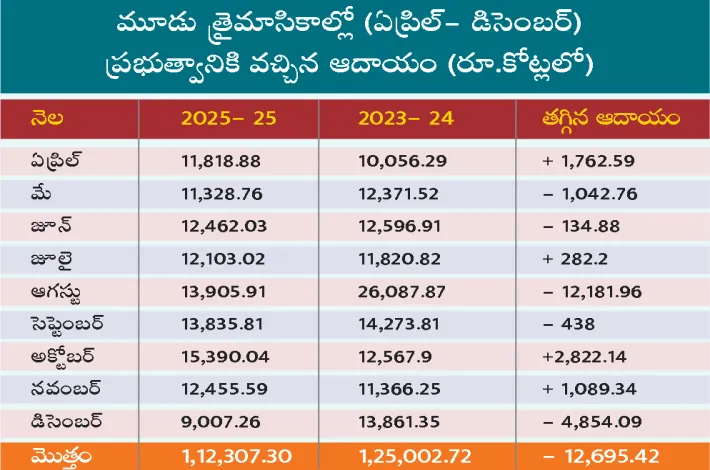 2024-25 ఆర్థిక సంవత్సరంలో ఇప్పటికే మూడు త్రైమాసి కాలు ముగిశాయి. ప్రస్తుతం నాలుగో త్రైమాసికం నడుస్తున్నది. రాష్ట్రప్రభుత్వం నెలకు రూ.18,436 కోట్ల సొంత ఆదాయాన్ని అంచనా వేస్తూ.. బడ్జెట్ను ప్రవేశపెట్టింది. గడిచిన తొమ్మిది నెలల్లో ఏ నెల కూడా ప్రభుత్వానికి చెప్పుకోదగిన ఆదాయ రాలేదు. డిసెంబర్లోనైతే కేవలం రూ.9 వేల కోట్ల ఆదాయం వచ్చింది.