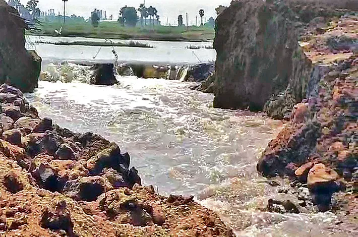 సూర్యాపేట, సెప్టెంబర్ 22(విజయక్రాం తి): సూర్యాపేట జిల్లా హుజూర్నగర్ మండలంలోని బూరుగడ్డ నల్ల చెరువు కట్టకు మళ్లీ గండి పడింది. రెండు వారాల క్రితం కురిసిన భారీ వర్షాలకు ఇదే చెరువు కట్ట తెగిపోవడంతో రోడ్డు కొట్టుకుపోయి రాకపోకలకు తీవ్ర ఇబ్బంది కలిగింది. మంత్రి ఉత్తమ్కుమార్రెడ్డి పరిశీలించి, వెంటనే సమస్యను పరిష్కరించాలని సంబంధిత అధికారులను ఆదేశించారు. కానీ అధికారులు తాత్కాలిక మరమ్మతులు చేపట్టి చేతులు దులుపుకున్నారు. ఈ నేపథ్యంలో శనివారం రాత్రి కురిసిన వర్షానికి తాత్కాలిక పనులు పూర్తికాకముందే కట్ట తెగిపోయి రాకపోకలు నిలిచిపోయాయి. మరమ్మతు పనుల్లో నాణ్యత లోపించడంతోనే గండి పడిందని ప్రజలు ఆరోపిస్తున్నారు.