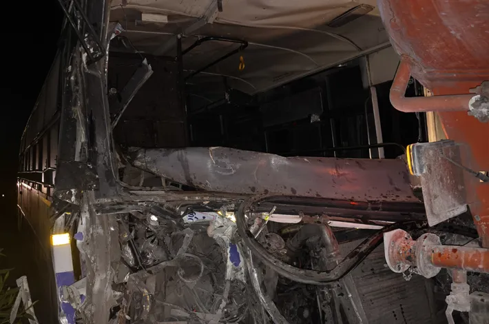 రాజీవ్ రహదారిపై బస్సు, లారీ ఢీ