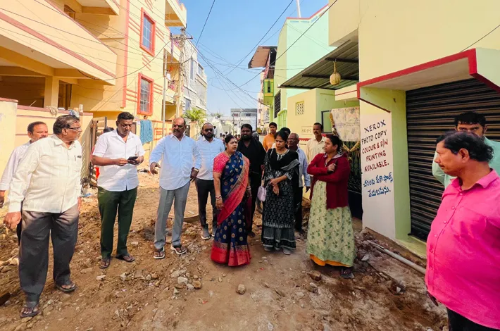 రామచంద్రపురం: రామచంద్రపురం డివిజన్ శ్రీనివాస్నగర్ కాలనీ బస్రూట్లోని 14వ బ్లాక్లో డ్రైనేజీ పనుల వల్ల రోడ్డు గుంతలమయంగా మారింది. విషయం తెలుసుకున్న స్థానిక కార్పొరేటర్, జీహెచ్ఎంసీ స్టాండింగ్ కమిటీ సభ్యులు బూరుగడ్డ పుష్పనగేష్ అధికారులతో కలిసి బస్తీలో పర్యటించారు. ఈ సందర్భంగా బస్తీవాసులు నూతన కరెంట్ పోల్ అవసరమని కోరగా, వెంటనే విద్యుత్ శాఖ అధికారులతో మాట్లాడి పరిష్కారం చూపించారు. అలాగే సానిటేషన్ సమస్యలపై చర్యలు తీసుకుంటామని తెలిపారు. ఈ వారంలోనే సీసీ రోడ్డు, కరెంట్ పోల్ పనులు ప్రారంభించి సమస్యలు పరిష్కరిస్తామని కార్పొరేటర్ హామీ ఇచ్చారు.