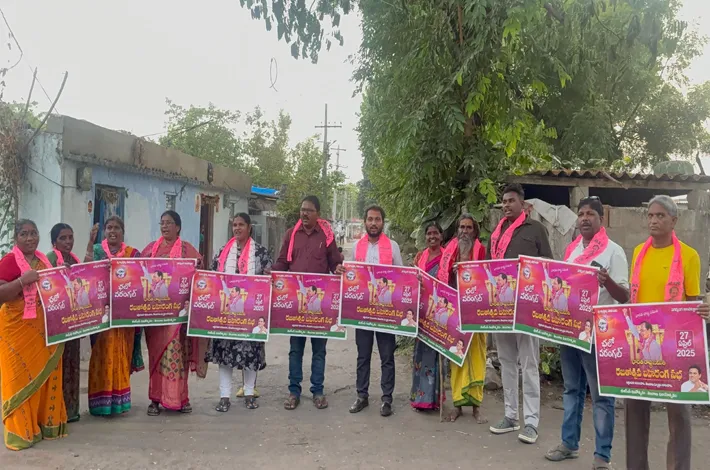 మందమర్రి (విజయక్రాంతి): ఈనెల 27న వరంగల్ జిల్లా ఎల్కతుర్తిలో జరగనున్న బీఆర్ఎస్ రజతోత్సవ సభను విజయవంతం చేయాలని బీఆర్ఎస్వీ జిల్లా నాయకులు ఎండి ముస్తఫా కోరారు. బుధవారం పట్టణంలోని 12, 13వ వార్డులలో చలో వరంగల్ పోస్టర్లను ఆవిష్కరించి ఆయన మాట్లాడారు. రాష్ట్రంలోని కాంగ్రెస్ ప్రభుత్వం ఆరు గ్యారెంటీలతో అధికారంలోకి వచ్చి హామీల అమలులో పూర్తిగా విఫలమైందని మండి పడ్డారు. రజతోత్సవ సభల్లో కాంగ్రెస్ ప్రభుత్వం అను సరిస్తున్న ప్రజావ్యతిరేక విధానాలు నిరసిస్తూ బీఆర్ఎస్ ఆధ్వర్యంలో చేపట్టనున్న ఆందోళన కార్యక్రమాలకు దిశ నిర్దేశం చేయడం జరుగుతుందని అన్నారు. ప్రజలు, బీఆర్ఎస్ అనుబంధ సంఘాల నాయకులు అధిక సంఖ్యలో హాజరై రజతోత్సవ సభను విజయవంతం చేయాలని కోరారు. ఈ కార్యక్రమంలో వార్డు అధ్యక్షులు కాళోజీ అనిల్ కుమార్, నాయకులు కట్ల మోహన్, కుడికాల కల్పన, యశ్వంత్, కుడికాల శ్రీనివాస్, స్వాతి, సుశీల, కవిత, రాజేశ్వరి, రోజా, అభిషేక్, విశాల్, శ్రీనాథ్ లు పాల్గొన్నారు