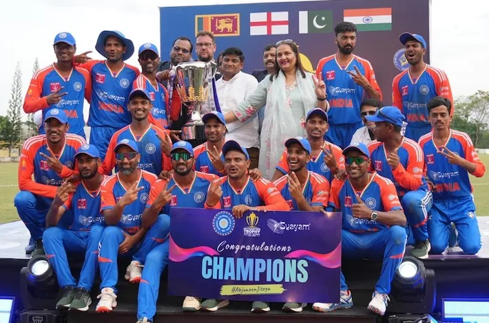 కొలంబో: శారీరక వికలాంగుల చాంపియన్స్ ట్రోఫీ విజేతగా భారత్ నిలిచింది. మంగళవారం కొలంబో వేదికగా ఇంగ్లండ్తో జరిగిన ఫైనల్లో ఇండియా 79 పరుగుల తేడాతో విజయాన్ని అందుకుంది. తొలుత బ్యాటింగ్ చేసిన భారత్ 20 ఓవర్లలో 4 వికెట్ల నష్టానికి 197 పరుగులు చేసింది. యోగేంద్ర భదోరియా (40 బంతుల్లో 73; 4 ఫోర్లు, 5 సిక్సర్లు) టాప్ స్కోరర్గా నిలిచాడు. అనంతరం బ్యాటింగ్ చేసిన ఇంగ్లండ్ 118 పరుగులకే ఆలౌటైంది. రాధిక ప్రసాద్ (4/19), రవీంద్ర (2/24), విక్రాంత్ (2/15) రాణించి భారత్ విజయంలో కీలకపాత్ర పోషించారు. ‘టోర్నీ ఆద్యంతం భారత కుర్రాళ్లు అదరగొట్టారు. ప్రతీ చాలెంజ్ను సమర్థంగా ఎదుర్కొని విజయం సాధించారు. ట్రోఫీ అందుకోవడం మాత్రమే కాదు మంచి ఆత్మవిశ్వాసానని కూడగట్టుకున్నారు’ అని జట్టు హెడ్కోచ్ రోహిత్ జలానీ పేర్కొన్నారు.