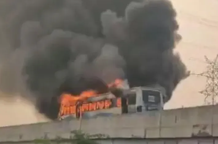 బస్సులో భారీ మంటలు: 50 మంది ప్రయాణికులు సేఫ్
