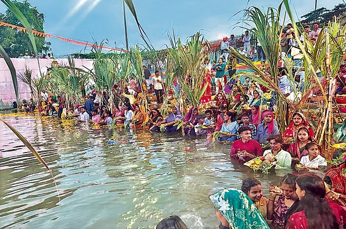బీహార్ అసోసియేషన్ ఆధ్వర్యంలో నాగోల్ చెరువులో ఉత్తర భారతీయులు ఛట్ పూజా కార్యక్రమాన్ని భక్తిశ్రద్ధలతో నిర్వహించారు. కార్యక్రమంలో ఎమ్మెల్యే సుధీర్ రెడ్డి, చింతల అరుణ సురేందర్ యాదవ్, జీహెచ్ఎంసీ డిప్యూటీ కమిషనర్ వంశీకృష్ణ, డీఈ నీలిమ, జవాన్ దర్శన్, బీహార్ అసోసియేషన్ అధ్యక్షుడు అమ్రేష్ కుమార్ మౌర్య, రాము, అమర్ నాథ్, మౌర్య, దినేశ్, బబ్లూ గుప్తా, మోహిత్, మంటూ కేసరి, అభిషేక్ మౌర్య తదితరులు పాల్గొన్నారు.