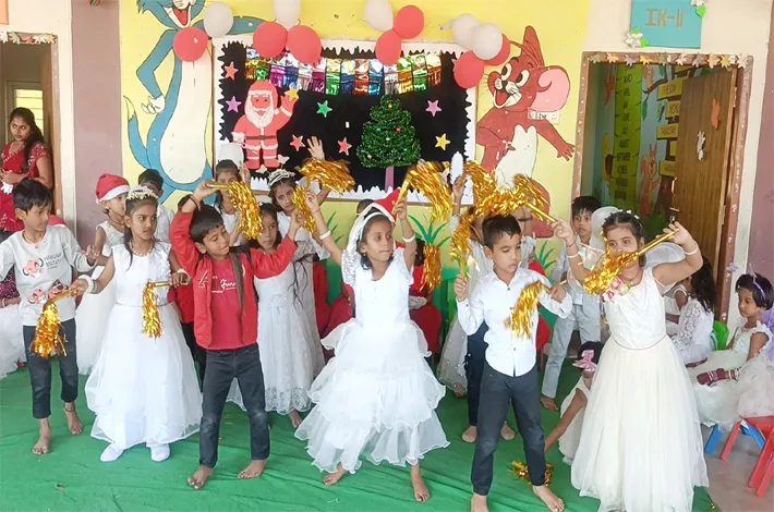 మంచిర్యాల టౌన్, (విజయక్రాంతి): మంచిర్యాల పట్టణం లక్ష్మీనగర్ శ్రీ చైతన్య పాఠశాలలో బుధ వారం ఘనంగా ప్రీ-క్రిస్మస్ వేడుకలు జరిపారు. ఈ సందర్భంగా పాఠశాల ప్రిన్సిపాల్ అయూబ్ విద్యార్థులనుద్దేశించి ప్రసంగించారు. అందరికి సంప్రదాయం, క్రిస్మస్ పండుగ గురించి అవగాహన కల్పించేందుకే ఈ వేడుకలను నిర్వహించామన్నారు. పిల్లలు శాంటా, దేవదూతల వేషాధారణతో అలరించారు. పాఠశాల ఆవరణ అంతా పండుగ వాతావరణం అలుముకుంది. జింగిల్ బెల్ పాటకు విద్యార్థులు చేసిన నృత్యాలు ఆకర్షణగా నిలిచాయి. ఈ కార్యక్రమంలో ఏజీఎం అరవింద్రెడ్డి, కోఆర్డినేటర్లు జయశ్రీ, రోజారాణి, ఇంచార్జిలు అనగమత, పిఇటి కిషన్, ఉపాధ్యాయులు, విద్యార్థులు తదితరులు పాల్గొన్నారు.