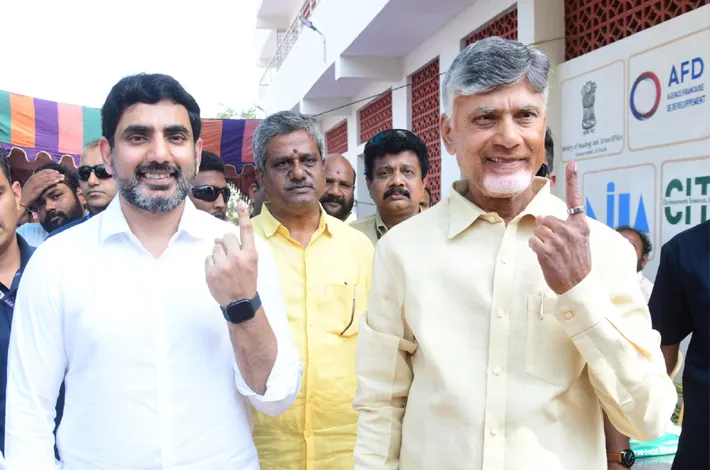 ఓటు హక్కు వినియోగించుకున్న ఏపీ సీఎం, మంత్రి లోకేశ్