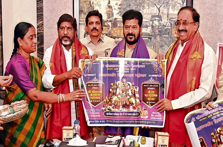 ఆదివారం సీఎం, డిప్యూటీ సీఎంతో పాటు మంత్రి తుమ్మలను హైదరాబాద్లోని సీఎం నివాసంలో కలిసి ఆహ్వానపత్రాలు అందజే శారు. ఈ సందర్భంగా శ్రీరామనవమి బ్రహ్మోత్సవాల పోస్టర్ను సీఎం, డిప్యూటీ సీఎం, మంత్రు లు ఆవిష్కరించారు. అనంతరం సీఎం రేవంత్రెడ్డి ఆలయ అభివృద్ధికి అవసరమైన భూ సేక రణ, ఇతర వివరాలను అడిగి తెలుసుకున్నారు.