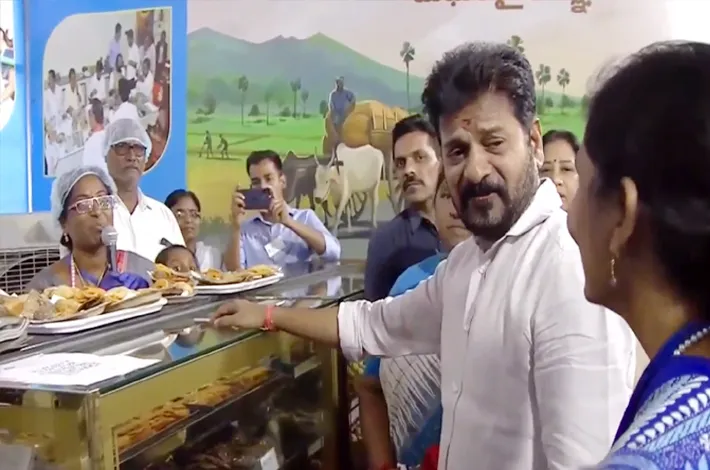 హైదరాబాద్,(విజయక్రాంతి): సికింద్రాబాద్లోని పరేడ్ గ్రౌండ్స్లో నిర్వహించే ఇందిరా మహిళా శక్తి కార్యక్రమం సభకు ముఖ్యమంత్రి రేవంత్ రెడ్డి చేరుకున్నారు. మహిళా సంఘాల స్టాళ్లను సీఎం రేవంత్ రెడ్డి, మంత్రులు సీత్తక్క, పొన్నం ప్రభాకర్ రెడ్డి, రాష్ట్ర ప్రధాన కార్యదర్శి శాంతి కుమారి సందర్శించారు.అనంతరం మహిళా సంఘాల ఒక్కొ ఉత్పత్తుల స్టాళ్ల నిర్వహకులతో రేవంత్ రెడ్డి ముచ్చటించారు. మహిళా పెట్రోల్ బంకుల నమూనాలను పరిశీలించిన సీఎం ఇందిరా మహిళా శక్తి క్యాంటీన్ నిర్వాహకులను వివరాలు అడిగి తెలుసుకున్నారు. రోజుకు 15 వేలు వ్యాపారం జరుగుతుందని నిర్వాహకులు ముఖ్యమంత్రికి వివరించారు. సభ స్టేజ్ పైకి చేరుకొని జ్యోతి ప్రజ్వలన చేసి కార్యక్రమాన్ని ప్రారంభించారు. అనంతరం తెలంగాణ సాంస్కృతి సారధి రూపొందించిన 'ఓ మహిళ' అనే పాటను సీఎం రేవంత్ రెడ్డి ఆవిష్కారించారు.
