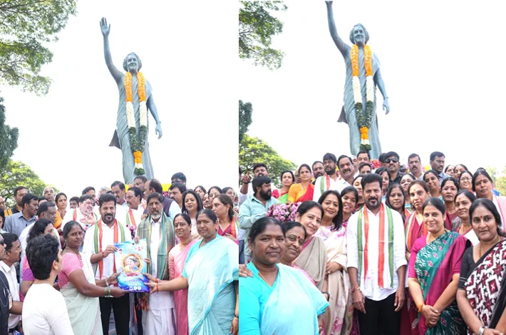 హైదరాబాద్: తెలంగాణలోని ఆడబిడ్డలకు ప్రభుత్వం తరఫున సారె పెట్టి గౌరవించాలన్న ఆలోచనతో కోటి మంది మహిళలకు కోటి చీరల పంపిణీ కార్యక్రమం చేపట్టామని ముఖ్యమంత్రి రేవంత్ రెడ్డి చెప్పారు. 2034 నాటికి రాష్ట్రంలో కోటి మంది మహిళలను కోటీశ్వరులను చేయాలన్న సంకల్పంతో ప్రభుత్వం ముందుకు వెళుతుందని పేర్కొన్నారు. మాజీ ప్రధానమంత్రి, భారతరత్న స్వర్గీయ ఇందిరా గాంధీ జయంతి సందర్భంగా ముఖ్యమంత్రి హైదరాబాద్ నెక్లెస్ రోడ్డు కూడలి వద్ద ఉప ముఖ్యమంత్రి భట్టి విక్రమార్క, ఇతర మంత్రులతో కలిసి ఆ మహనీయురాలి విగ్రహానికి పుష్పాంజలి ఘటించారు.