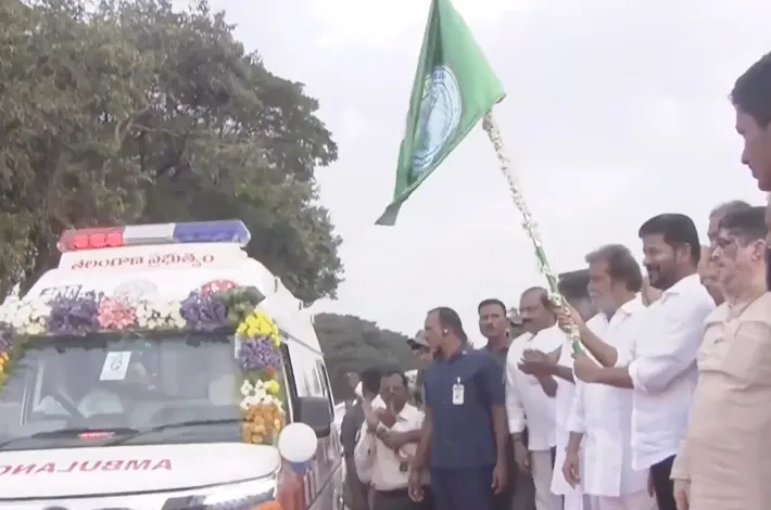 హైదరాబాద్: ఎన్టీఆర్ మార్గ్ లోని హెచ్ఎండీఏ గ్రౌండ్స్ లో నిర్వహించిన కార్యక్రమంలో ఆరోగ్య ఉత్సవాలకు ముఖ్యమంత్రి రేవంత్ రెడ్డి సోమవారం సాయంత్రం శ్రీకారం చుట్టారు. 108 కోసం 136, 102 కోసం 77 అంబులెన్స్ లకు సీఎం రేవంత్ రెడ్డి జెండా ఊపి ప్రారంభించారు. ప్రజాపాలన ప్రజా విజయోత్సవాల్లో భాగంగా తెలంగాణ ప్రభుత్వం ఆరోగ్య ఉత్సవాలు నిర్వహిస్తోంది. ఈ కార్యక్రమంలో వైద్య, ఆరోగ్య శాఖ మంత్రి రాజనర్సింహ, పొన్నం ప్రభాకర్, పలువురు ఉన్నతాధికారులు పాల్గొన్నారు.