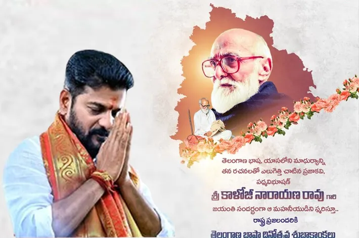 హైదరాబాద్: ప్రముఖ స్వాతంత్య్ర సమరయోధుడు, ప్రజాకవి, పద్మవిభూషణ్ అవార్డు గ్రహీత స్వర్గీయ కాళోజీ నారాయణరావు జయంతి సందర్భంగా తెలంగాణ ముఖ్యమంత్రి రేవంత్ రెడ్డి ఆయనకు ఘనంగా నివాళులర్పించారు. కాళోజీ జయంతిని పురస్కరించుకుని ‘తెలంగాణ భాషా దినోత్సవం’జరుపుకోవడం సంతోషకరమని పేర్కొన్నారు. తెలంగాణ రాష్ట్రానికి, భాషకు కాళోజీ చేసిన సేవలను స్మరించుకోవడంలోని విశిష్టతను తెలియజేస్తూ తెలంగాణ ప్రజలకు ఆయన హృదయపూర్వక శుభాకాంక్షలు తెలిపారు.