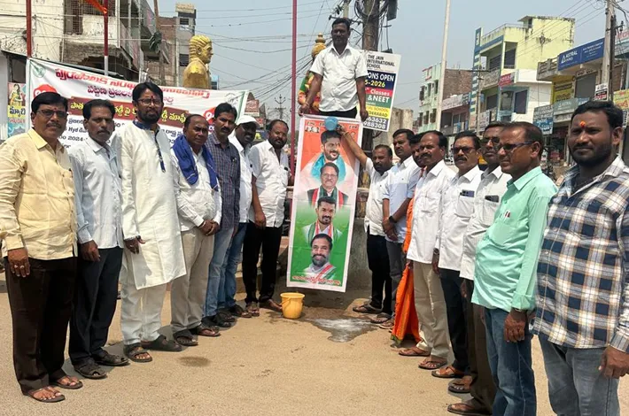 సీఎం రేవంత్ రెడ్డి, సీతక్క, చిత్రపటాలకు పాలాభిషేకం