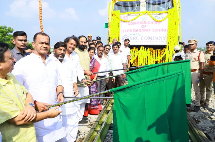 బొగ్గును తరలించే రైలుకు పచ్చజెండా ఊపిన మంత్రులు