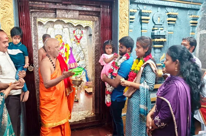 వరంగల్, మార్చి 1 (విజయక్రాంతి): హనుమకొండ జిల్లా కలెక్టర్ చాహత్ బాజ్పాయ్, ఎన్.పి.డి.సి.ఎల్ సి.ఎం.డి వరుణ్ రెడ్డి దంపతులు కుటుంబ సమేతంగా వరంగల్ మహానగరంలో చరిత్ర ప్రసిద్ధిగాంచిన శ్రీ భద్రకాళీ అమ్మవారి ఆలయాన్ని ఆదివారం ఉదయం సందర్శించి అమ్మవారిని దర్శించుకున్నారు. ఆలయానికి విచ్చేసిన జిల్లా కలెక్టర్ కుటుంబ సభ్యులకు ఆలయ ఈవో రామల సునీత, ప్రధానార్చకులు భద్రకాళి శేషు, ధర్మకర్తలు తొనుపునూరి వీరన్న, ఓరుగంటి పూర్ణచందర్, మూగా శ్రీనివాసరావులు పూర్ణకుంభం, మంగళవాద్యాలతో ఘనస్వాగతం పలికారు.