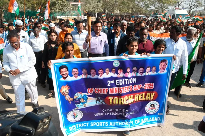 ఆదిలాబాద్, జనవరి 8 (విజయక్రాంతి): ‘రూరల్ టు గ్లోబల్’ నినాదంతో గ్రామీణ స్థాయి క్రీడాకారులను రాష్ట్ర, జాతీయ స్థాయికి తీసుకెళ్లడమే సీఎం కప్ లక్ష్యమని జిల్లా కలెక్టర్ రాజర్షి షా పేర్కొన్నారు. ముఖ్యమంత్రి కప్ 2025 (రెండో ఎడిషన్) క్రీడా పోటీల ప్రారంభోత్సవాన్ని పురస్కరించుకుని జిల్లా క్రీడా ప్రాధికార సంస్థ ఆధ్వర్యంలో ఏర్పాటు చేసిన క్రీడా జ్యోతి (టార్చ్ రిలే) ర్యాలీ ని గురువారం అట్టహాసంగా నిర్వహించారు. కలెక్టర్ క్రీడా జ్యోతి వెలిగించి, పచ్చజెండా ఊపి ర్యాలీని ప్రారంభించారు. ఇందిరా ప్రియదర్శిని స్టేడి యం నుంచి ప్రారంభమైన ఈ ర్యాలీ స్థానిక కొమురం భీం కూడలి వరకు కొనసాగింది. అనంతరం విద్యార్థులు మానవహారం ప్రదర్శించి అందరి దృష్టిని ఆకర్షించారు.