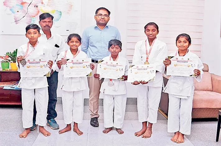 కరాటే పోటీలలో జూలపల్లి మండలం పెద్దాపూర్ ప్రభుత్వ పాఠశాల విద్యార్థులను పాల్గొని ఉత్తమ ప్రతిభ కనబరిచారని అన్నారు. రాష్ట్ర స్థాయి ఛాంపియన్షిప్ పోటీలలో పాల్గొని పతకాలు సాధించిన విద్యార్థినులను కలెక్టర్ అభినందించారు. ఈ కార్యక్రమంలో కరాటే మాస్టర్ సంకెండ్ల లక్ష్మణ్ ను అభినందించారు. కరాటే కట్టాస్ విభాగంలో గోల్ మెడల్ విజేత సహస్ర, సిల్వర్ మెడల్ విజేతలు ఎస్ డీ. అహ్మద్, హర్షవర్ధన్, సాహితి, శివ వర్దిని లు తదితరులు పాల్గొన్నారు.