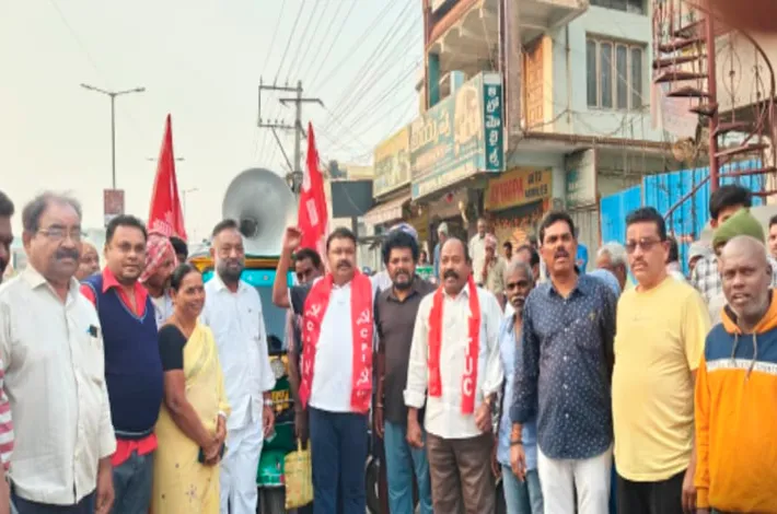 ఖమ్మం, రఘనాథపాలెం, డిశంబర్ 29 (విజయక్రాంతి ): భారత కమ్యూనిస్టు పార్టీ శతాబ్ది ఉత్సవాల ముగింపు సందర్భంగా జనవరి 18న జరగనున్న బహిరంగ సభకు పెద్ద ఎత్తున తరలి రావాలని సిపిఐ నగర కార్యదర్శి ఎస్ కె జానిమియా విజ్ఞప్తి చేశారు. బహిరంగ సభ ప్రచార కార్యక్రమంలో భాగంగా సోమవారం స్థానిక జెడ్పి సెంటర్ పాటు పలు కూడళ్లలో ప్రచారం నిర్వహించారు. ప్రజలకు కరపత్రాలను పంచుతూ బహిరంగ సభ ప్రాముఖ్యతను వివరించారు.