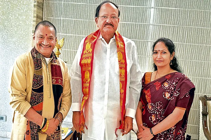 హైదరాబాద్ సిటీ బ్యూరో, అక్టోబర్ 22 (విజయక్రాంతి): ఆంధ్ర సారస్వత పరిషత్ ఆంధ్రప్రదేశ్ ఆధ్వర్యంలో 2026 జనవరి 3 నుంచి 5వ వరకు గుంటూరులోని అమరావతి శ్రీసత్య సాయి స్పిరచువల్ సిటీ ప్రాం గణం (హైవే)లో శ్రీ నందమూరి తారకరామారావు వేదికపై నిర్వహించే 3వ ప్రపంచ తెలుగు మహాసభలకు 5వ తేదీ సాయంత్రం జరిగే సమాపనోత్సవానికి ముఖ్య అతిథిగా హాజరుకావాలని మాజీ ఉపరాష్ట్రపతి ఎం వెంకయ్యనాయుడును- ఆంధ్ర సారస్వత పరిషత్తు అధ్యక్షుడు డాక్టర్ గజల్ శ్రీనివాస్.. తన సతీమణి సురేఖతో సహా బుధవారం హైదరాబాద్లో కలిసి ఆహ్వానించారు. వెంకయ్య నాయుడు సానుకూలంగా స్పందించారని డాక్టర్ గజల్ శ్రీనివాస్ తెలిపారు.