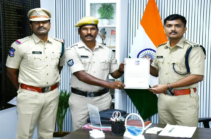 సంగారెడ్డి, జూన్ 28 (విజయక్రాంతి): పోలీసు శాఖ ఇటీవల నిర్వహించిన ఆల్ ఇండియా బ్యాడ్మింటల్ టోర్నమెంట్లో ఉత్తమ ప్రతిభ కనబరిచిన హోం గార్డ్ ఆర్ జైపాల్కు శుక్రవారం ఎస్పీ రూపేశ్ ప్రశంసా పత్రం అందజేశారు. కష్టపడి పని చేసే వారికి పోలీసుశాఖ గుర్తిసుందన్నారు. అనంతరం హోంగార్డును జహీరాబాద్ డీఎస్పీ రామ్మోహన్రెడ్డి అభినందించారు.