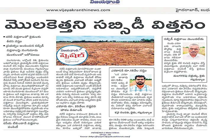 - మొలకెత్తని సబ్సిడీ విత్తనాలు వార్త కథనం ప్రచురించిన ‘విజయక్రాంతి’