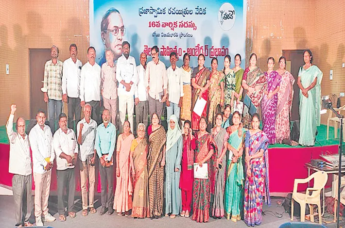 సిద్దిపేట, ఫిబ్రవరి ౧౦ (విజయక్రాంతి): ప్రజాస్వామిక రచయిత్రుల వేదిక 16వ వార్షికోత్సవ వేడుక బోయి విజయ భారతి ప్రాంగణం (విపంచి కళానిలయం) సిద్దిపేటలో ఆదివారం రెండవ రోజుతో ముగిసింది. మొదటి సెషన్ అంబేద్కర్ స్ఫూర్తి కవి గాయక సమ్మేళనానికి డాక్టర్ తాళ్లపల్లి యాకమ్మ వహించారు. దళిత బహుజనులను చైతన్య పరుస్తూ వచ్చిన సాహిత్యం వెనుక అంబేద్కర్ సిద్ధాంతమే దాగి ఉందాని వివరించారు.