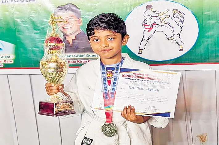 కోదాడ ఫిబ్రవరి 9: వరంగల్ జిల్లా నర్సంపేట లో నిర్వహించిన నేషనల్ కరాటే ఛాంపియన్ పోటీలో అండర్ 15 కోదాడ పట్టణానికి చెందిన మాదవరపు శ్రేయాన్ గోల్ మెడల్ సాధించాడు. ఆదివారం శ్రేయాన్ ను ప్రముఖ న్యాయవాదులు మాధవరపు రామకృష్ణ, హనుమంతరాజు లతో పాటు పలువురు అభినందించారు. భవిష్యత్ లో మరిన్ని పతకాలు సాధించి కోదాడకు మంచి పేరు తేవాలని కోరారు.