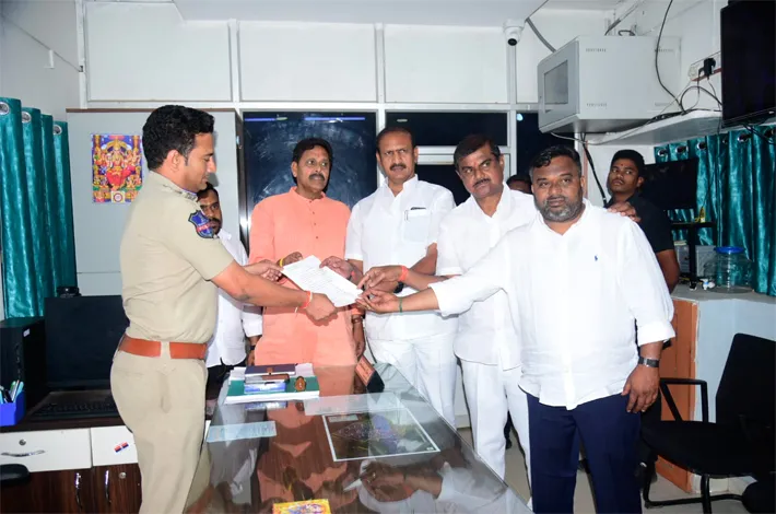 కరీంనగర్ క్రైం, ఫిబ్రవరి 9 (విజయ క్రాంతి): కేంద్ర హోం శాఖ సహాయ మంత్రి బండి సంజయ్ కాంగ్రెస్ పార్టీ నాయకులకు, ఎంఐఎం పార్టీ నాయకులకు మధ్య వంద కోట్ల ఒప్పందం కుదిరిందని చేసిన ఆరోపణల పై విచారణ జరిపించాలని కోరుతూ సోమవారం సుడా చైర్మన్ కోమటిరెడ్డి నరేందర్ రెడ్డి వన్ టౌన్ సిఐకి ఫిర్యాదు చేశారు. ఈ కార్యక్రమంలో గ్రంథాలయం సత్తు మల్లేశం, అర్బన్ బ్యాంక్ చైర్మన్ కర్ర రాజశేఖర్, ఆకార భాస్కర్ రెడ్డి, తదితరులు పాల్గొన్నారు.