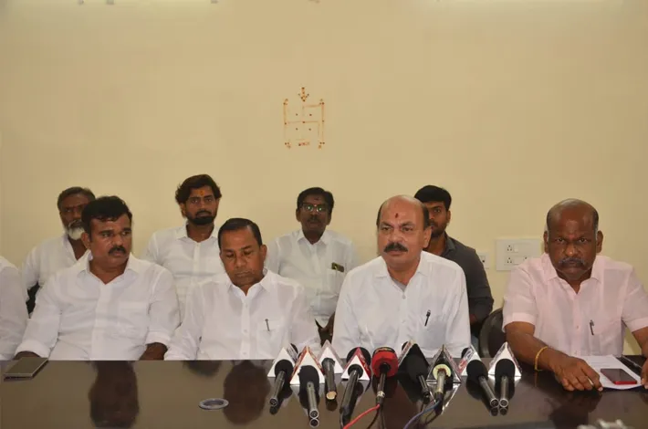సంగారెడ్డి : కాంగ్రెస్ పార్టీ నాయకులు కేటీఆర్ పై అసత్య ప్రచారం చేస్తున్నారని సంగారెడ్డి, జహీరాబాద్ ఎమ్మెల్యేలు చింత ప్రభాకర్ మాణిక్ రావు ఆరోపించారు. శుక్రవారం సంగారెడ్డి క్యాంపు కార్యాలయంలో ఏర్పాటుచేసిన విలేకరుల సమావేశంలో వారు మాట్లాడారు. రాష్ట్ర మాజీ మంత్రి హరీష్ రావును రాజీనామా చేయమనడం తగదని ముందుగా ఎన్నికల్లో ఇచ్చిన హామీలు అన్నిటిని కాంగ్రెస్ పార్టీ అమలు చేయాలని డిమాండ్ చేశారు. ఈ సమావేశంలో ఆందోల్ మాజీ ఎమ్మెల్యే చంటి కాంతి కిరణ్ డీసీఎంఎస్ చైర్మన్ శివకుమార్ నాయకులు బుచ్చిరెడ్డి తదితరులున్నారు