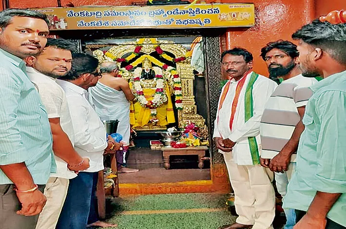వెంకటేశ్వరాలయంలో కాంగ్రెస్ నాయకుల పూజలు