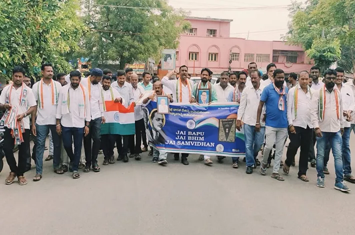 జై బాపు.. జై భీమ్.. జై సంవిదాన్ యాత్రలో కాంగ్రెస్ నాయకులు