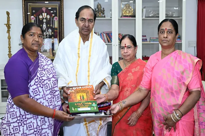 హైదరాబాద్: ఎర్రవెల్లిలోని తన నివాసంలో బీఆర్ఎస్ అధినేత, మాజీ సీఎం కేసీఆర్ను పంచాయతీ రాజ్ & మహిళా, శిశు సంక్షేమ శాఖల మంత్రి సీతక్క, రాష్ట్ర దేవదాయ ధర్మదాయ, అటవీ శాఖ మంత్రి కొండా సురేఖ మర్యాదపూర్వకంగా కలిశారు. మరికొద్ది రోజుల్లో మేడారం సమ్మక్క సారలమ్మ జాతర ప్రారంభం కానున్న సందర్భంగా జాతరను సందర్శించాలని కోరుతూ కేసీఆర్ ని ప్రభుత్వం తరఫున వారు ఆహ్వానించారు. ఈ సందర్భంగా శాలువా కప్పి ఆహ్వాన పత్రికను, మేడారం ప్రసాదం అందజేశారు. తన ఇంటికి వచ్చిన ఆడబిడ్డలను ఆత్మీయంగా పలకరించి సాదరంగా ఆహ్వానించిన కేసీఆర్ శోభమ్మ దంపతులు, వారిని పసుపు కుంకుమ వస్త్రాలు, తాంబులాలతో సాంప్రదాయ పద్ధతిలో సత్కరించారు.