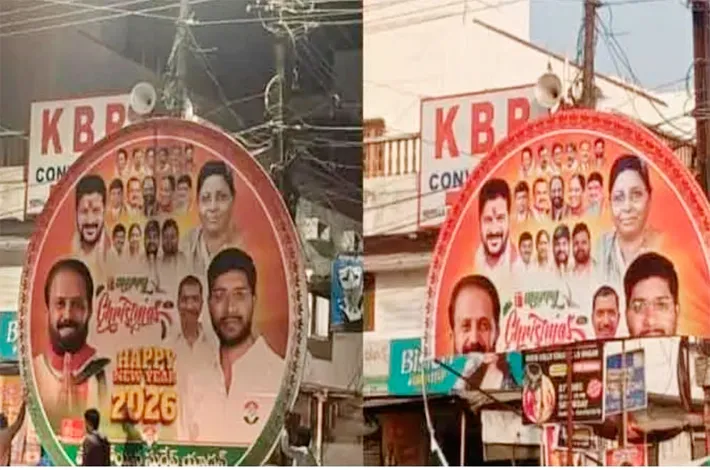 నూతన సంవత్సర ఫ్లెక్సీల ఏర్పాట్లలో ఫొటోల వివాదం -