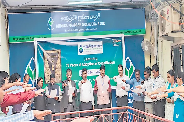 హైదరాబాద్, నవంబర్ 26 (విజయక్రాంతి): భారత రాజ్యాంగం ఆమోదించబడి 75 ఏళ్ల పూర్తయిన సందర్భంగా గుంటూరులోని ఆంధ్రప్రదేశ్ గ్రామీణ బ్యాంక్ హెడ్ ఆఫీసులో బుధవారం రాజ్యాంగ దినోత్సవాన్ని నిర్వహించారు. ఈ కార్యక్రమానికి ఓఎస్డీ ఎం. అరుణ్ కుమార్, విజిలెన్స్ ఇంచార్జ్ హరిష్ బేత, జనరల్ మేనేజర్లు, అలాగే వివిధ విభాగాల సిబ్బంది హాజరయ్యారు.