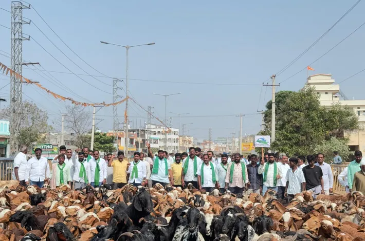 గుమ్మడిదలలో జాతీయ రహదారిపై గొర్రెలతో నిరసన..