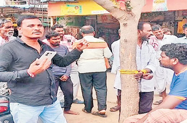 -చెట్టుకు కట్టేసిన కాంట్రాక్టర్