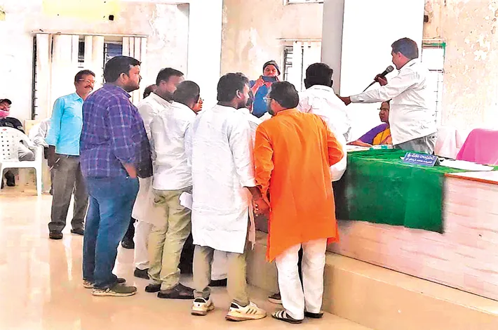ఈ సందర్భంగా శిథిలావస్థకు చేరిన రెండు మడిగడల కూల్చివేత అంశం రచ్చకు దారితీసింది. నెలనెలా మంచి అద్దె వస్తున్న రెండు మడిగడిలను కూల్చడం సరికాదని కాంగ్రెస్ కౌన్సిలర్లు మున్సిపల్ చైర్పర్సన్ పోకల జమునతో వాదనకు దిగారు. పోడియంను చుట్టుముట్టి నిరసన తెలిపారు. ప్రధాన పోస్టాఫీస్ కార్యాలయం ఎదురుగా సంతోషిమాత ఆలయా నికి ఆనుకుని ఉన్న మడిగడిలనే కూల్చేందుకు కుట్ర చేస్తున్నారని ఆరోపించారు.