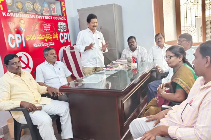 కరీంనగర్: హుజురాబాద్ పట్టణంలో ఈనెల 20వ తేదీన భారత కమ్యూనిస్టు పార్టీ (సీపీఐ) కరీంనగర్ జిల్లా జనరల్ బాడీ మరియు నిర్మాణ కౌన్సిల్ సమావేశం జరుగనుంది. ఈ సమావేశాన్ని జయప్రదం చేయాలని సీపీఐ జిల్లా కార్యదర్శి మర్రి వెంకటస్వామి పిలుపునిచ్చారు. సోమవారం కరీంనగర్ లోని బద్దం ఎల్లారెడ్డి భవన్ లో సీపీఐ జిల్లా కార్యవర్గ సమావేశం కసిరెడ్డి సురేందర్ రెడ్డి అధ్యక్షతన జరిగినది.