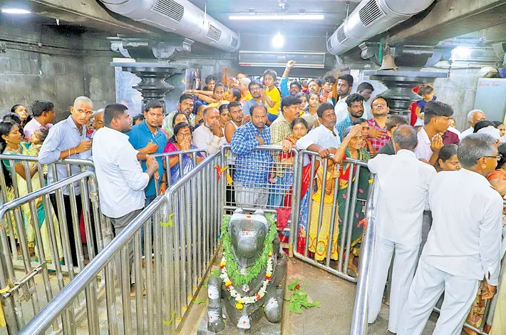 వేములవాడ శ్రీరాజరాజేశ్వరస్వామి ఆలయంలో ఆదివారం భక్తుల రద్దీ నెలకొంది. వివిధ ప్రాంతాల నుంచి వచ్చిన భక్తులు స్వామి వారిని దర్శించుకునేందుకు, కోడె మొక్కులు చెల్లించుకునేందుకు తెల్లవారుజామునుంచి క్యూలైన్లలో బారులు తీరారు. కోడెమొక్కులు, కుంకుమపూజలతో భక్తిభావం ఉప్పొంగింది. భక్తులరద్దీతో పట్టణంలో ట్రాఫిక్ జామ్ నెలకొంది.