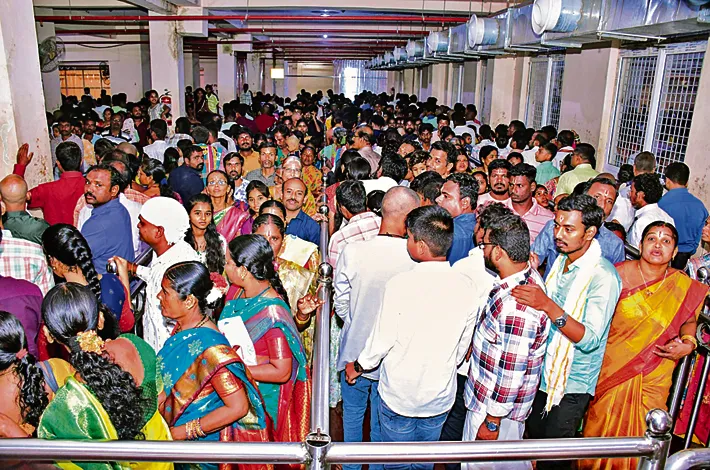 యాదాద్రిభువనగిరి, విజయక్రాంతి: ప్రసిద్ధ పుణ్యక్షేత్రం యాదగిరిగుట్ట లక్ష్మీనరసింహ స్వామి ఆలయ సన్నిధిలో ఆదివారం భక్తుల సందడి నెలకొంది. వారాంతపు సెలవుల కారణంగా పెద్ద ఎత్తున భక్తులు స్వామివారి దర్శనానికి రావడంతో కొండపై భక్తుల రద్దీ నెలకొంది. క్యూ కాంప్లెక్స్లు భక్తులతో కిక్కిరిసిపోయాయి. ధర్మద్రర్శనానికి దాదాపు 3గంటల సమయం పట్టింది. భక్తులు స్వామివారిని దర్శించుకుని ప్రత్యేక పూజలు చేసి మొక్కులు చెల్లించుకున్నారు.