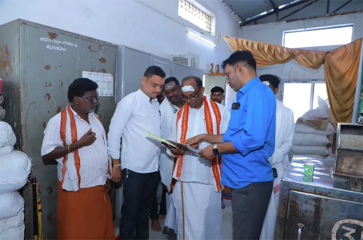 వన్డే భోజన సదుపాయాన్ని తనిఖీ చేసి, భక్తులకు శుభ్రతతో కూడిన నాణ్యమైన ఆహారం అందించాలని సూచించారు.అదనంగా నిత్య కళ్యాణం నిర్వహణ విధానం, సంబంధిత రికార్డులు, భక్తులకు తాగునీరు అందించే చలివేంద్ర కేంద్రాన్ని కూడా పరిశీలించారు. అవసరమైన చోట్ల మెరుగుదల చర్యలు తీసుకోవాలని సిబ్బందికి సూచనలు చేశారు.ఆలయానికి వచ్చే ప్రతి భక్తుడికి ఎలాంటి అసౌకర్యం కలగకుండా అన్ని ఏర్పాట్లు పక్కాగా ఉండాలని ఈఓ స్పష్టం చేశారు. ఈ పర్యవేక్షణ కార్యక్రమంలో ఆలయ ఉద్యోగులు, సిబ్బంది పాల్గొన్నారు.
