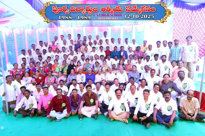 బెల్లంపల్లి అర్బన్: ఆ విద్యార్థులు ఎంతో కాలానికి గానీ కలుసుకోలేదు. జీవన గమనంలో ఎక్కడెక్కడో స్థిరపడిన పూర్వ విద్యార్థులకు ఆదివారం సమ్మేళనం ఆతిథ్యం ఇచ్చింది. 1988-89 బ్యాచ్ కి చెందిన బెల్లంపల్లి సీఎస్ఐ హై స్కూల్ విద్యార్థులు, విద్యా అభ్యాసం చేసిన గురువులు కలుసుకున్నారు. ఉపాధ్యాయులుగా, ఆనాటి విద్యార్థులుగా ఇరువురు తమ విభిన్నమైనా అనుభవాలు, స్మృతులు, అల్లరి చిలిపి చేష్టలను నెమరువేసుకున్నారు.