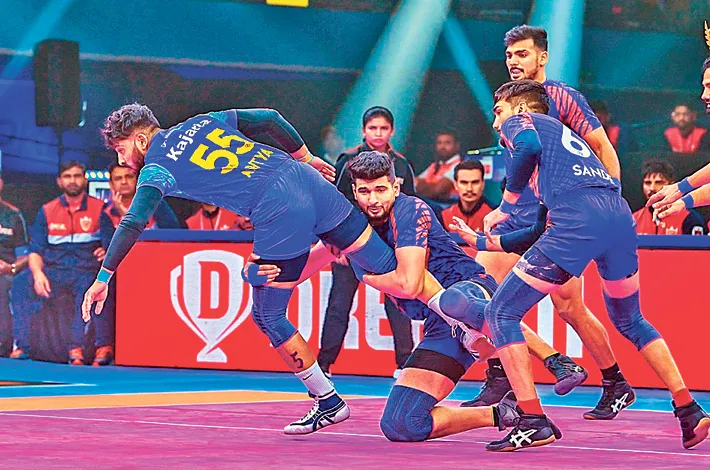 పుణే: ప్రొ కబడ్డీ లీగ్ (పీకేఎల్) 11వ సీజన్లో దబంగ్ ఢిల్లీ ప్లేఆఫ్స్కు దూసుకెళ్లింది. సోమవారం బెంగాల్ వారియర్స్పై విజయంతో ఢిల్లీ రెండో జట్టుగా ప్లేఆఫ్స్లో అడుగుపెట్టింది. పుణే వేదికగా జరిగిన తొలి మ్యాచ్లో ఢిల్లీ 47 తేడాతో బెంగాల్ వారియర్స్పై విజయాన్ని నమోదు చేసుకుంది. ఢిల్లీ తరఫున ఆశూ మాలిక్ (17 పాయింట్లు) తన ప్రదర్శనతో అదరగొట్టాడు. బెంగాల్ తరఫున విశ్వాస్ 8 పాయింట్లు సాధించాడు. ఇప్పటికే హర్యానా స్టీలర్స్ తొలి జట్టుగా ప్లేఆఫ్స్ చేరుకున్న సంగతి తెలిసిందే. మరో మ్యాచ్లో పట్నా పైరేట్స్ 37 పునేరి పల్టన్పై విజయాన్ని అందుకుంది. పట్నా తరఫున రెయిడర్ దేవాంక్ (11 పాయింట్లు) సూపర్ టెన్తో మెరవగా.. అయాన్ 9 పాయింట్లు సాధించాడు. అభినేశ్ పునేరి పల్టన్కు 7 పాయింట్లు అందించాడు. నేటి మ్యాచ్ల్లో హర్యానాతో యూపీ యోధాస్, జైపూర్తో బెంగళూరు తలపడనున్నాయి.