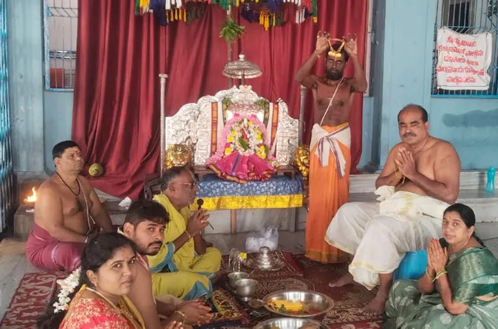 మఠంపల్లి: మఠంపల్లి మండలంలోని శ్రీ లక్ష్మీ నరసింహ స్వామి వారి దేవస్థానం, మట్టపల్లి మహాక్షేత్రం నందు గురువారం శ్రీ స్వామి వారికి ప్రాతఃకాలమున నిత్యాభిషేకములు, నిత్య హోమములు జరిగాయి. నిత్య కళ్యాణం దేవాలయ అర్చకులు తూమాటి కృష్ణమాచార్యులు, పద్మనాభా చార్యులు, లక్ష్మీనరసింహ మూర్తి, ఆంజనేయ చార్యులు వార్లచే శాస్త్రోతముగా నిర్వహించబడినది. కల్యాణంలో పాల్గొన్న దంపతులు కీతా ప్రశాంత్ లక్ష్మీ ప్రణీత, బాలు శ్రీనివాస్ అరుణ దంపతులు పాల్గొన్నారు.