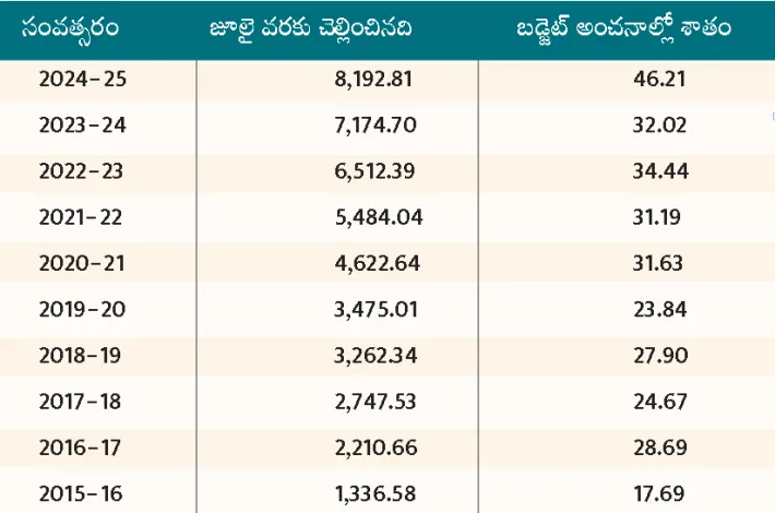 గత పదేళ్లలో ఏప్రిల్ మధ్య ప్రభుత్వం చెల్లించిన వడ్డీలు, బడ్జెట్ అంచనాల్లో శాతం వివరాలు
