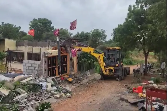 రాజేంద్రనగర్, జూలై 22: నార్సింగిలో ఎమ్మార్పీఎస్ నేత నరేందర్తో పాటు అతని స్నేహితుడు ప్రవీణ్ను కిడ్నాప్ చేసి శంషాబాద్ పరిధిలోని ధర్మగిరి ప్రాంతంలో నిర్బంధించిన ఫాంహౌస్ను పోలీసులు సోమవారం కూల్చి వేయించారు. దానికి అనుమతులు లేవని గుర్తించి శంషాబాద్ మున్సిపల్ అధికారులకు ఫిర్యాదు చేశారు. ఈ నేపథ్యంలో జేసీబీ సాయంతో భారీ బందోబస్తు నడుమ రాజేంద్రనగర్ డీసీపీ శ్రీనివాస్ ఫాంహౌస్ను నేలమట్టం చేయించారు. ఫాంహౌస్ యజమానికి నోటీసులు జారీ చేసిన అనంతరం మున్సిపల్ అధికారులు కూల్చివేతకు ఉపక్రమించారు.