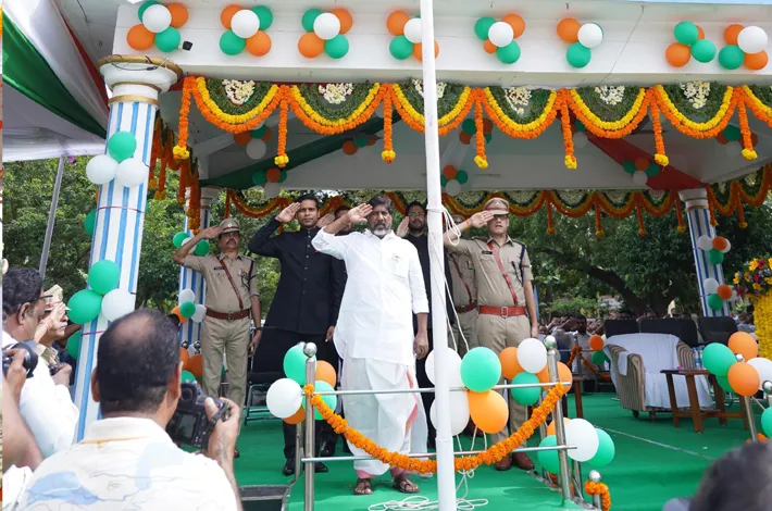 ఖమ్మం: ఖమ్మంలో జరిగిన స్వాతంత్ర దినోత్సవ వేడుకల్లో ముఖ్యఅతిథిగా రాష్ట్ర ఉపముఖ్యమంత్రి వర్యులు భట్టి విక్రమార్క హాజరయ్యారు. ఖమ్మం పోలీస్ పరేడ్ గ్రౌండ్ కు చేరుకున్న డిప్యూటీ సీఎం భట్టి విక్రమార్క కు జిల్లా కలెక్టర్, జిల్లా ఎస్పీ,జిల్లా ప్రజా ప్రతినిధులు ఘనంగా స్వాగతం పలికారు. ఖమ్మం పరేడ్ గ్రౌండ్లో స్వాతంత్ర దినోత్సవ వేడుకలకు హాజరైన ప్రజా ప్రతినిధులకు అధికారులకు విద్యార్థిని విద్యార్థులకు ప్రజలకు డిప్యూటీ సీఎం అభివాదం చేశారు. ఖమ్మం పోలీస్ గ్రౌండ్ లో భట్టి విక్రమార్క జాతీయ జెండాను ఆవిష్కరించారు. ఖమ్మం పోలీస్ పరేడ్ గ్రౌండ్ లో స్వాతంత్ర దినోత్సవ వేడుకల సందర్భంగా ఉప ముఖ్యమంత్రి పోలీసుల నుంచి గౌరవ వందనం స్వీకరించారు.